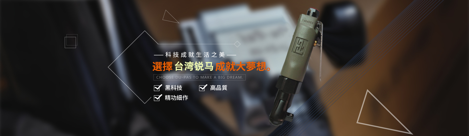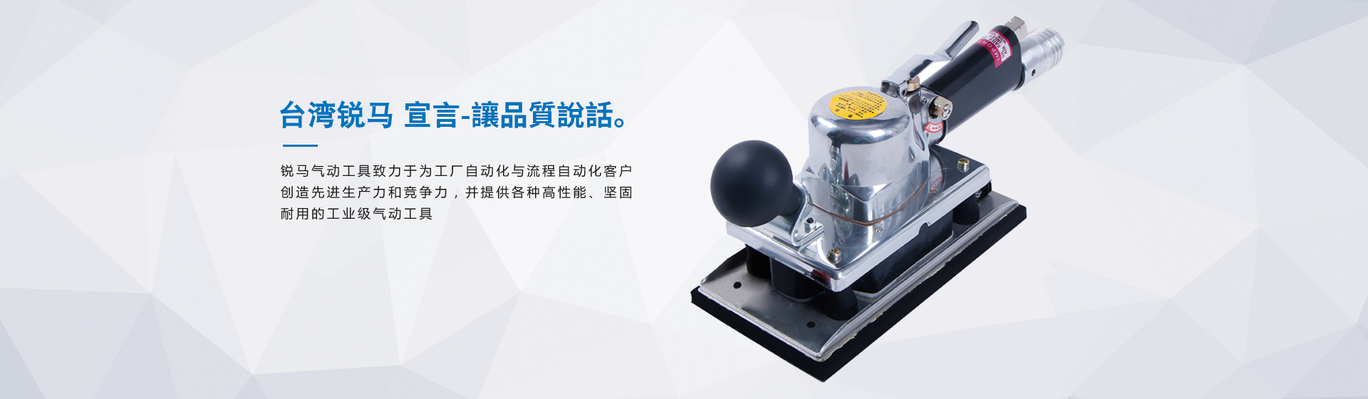 為給廣大客戶提供更加優(yōu)質(zhì)完善的服務(wù),臺(tái)灣銳馬氣動(dòng)工具于2001年進(jìn)入中國(guó)大陸市場(chǎng),并以100%臺(tái)灣原裝進(jìn)口氣動(dòng)工具在大陸銷(xiāo)售銳馬、杜派氣動(dòng)工具以及充電式電動(dòng)工具。